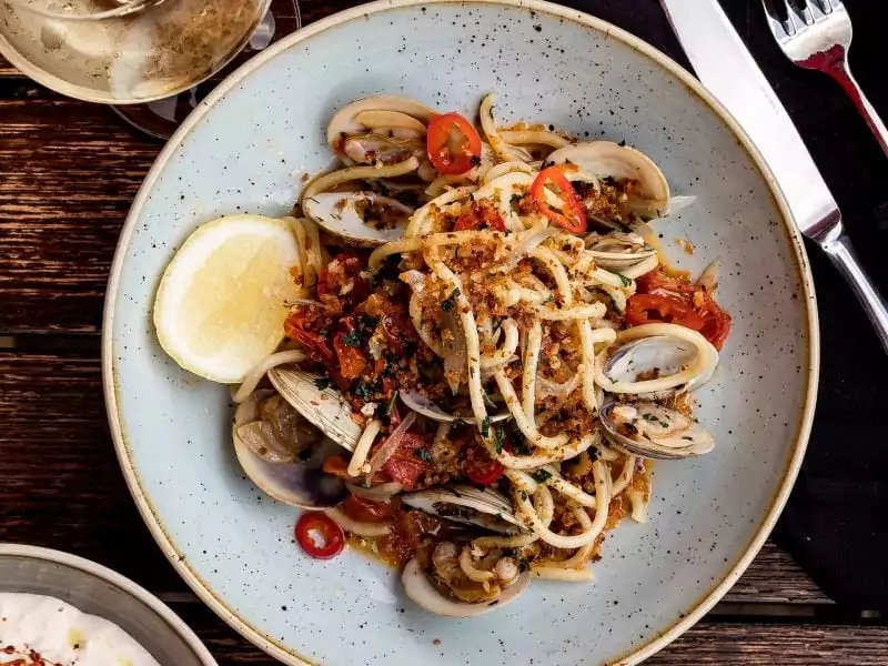 As this particular type of pasta is very thin and light, it goes perfectly with soups, seafood and light sauces. Unlike other pastas, you can eat a lot without getting full – which is a bonus when a dish is this delicious! Our take on this Italian classic includes fresh lobster and flying fish rose, enlivened by liberal helpings of garlic, fiery chilli flakes and olive oil.